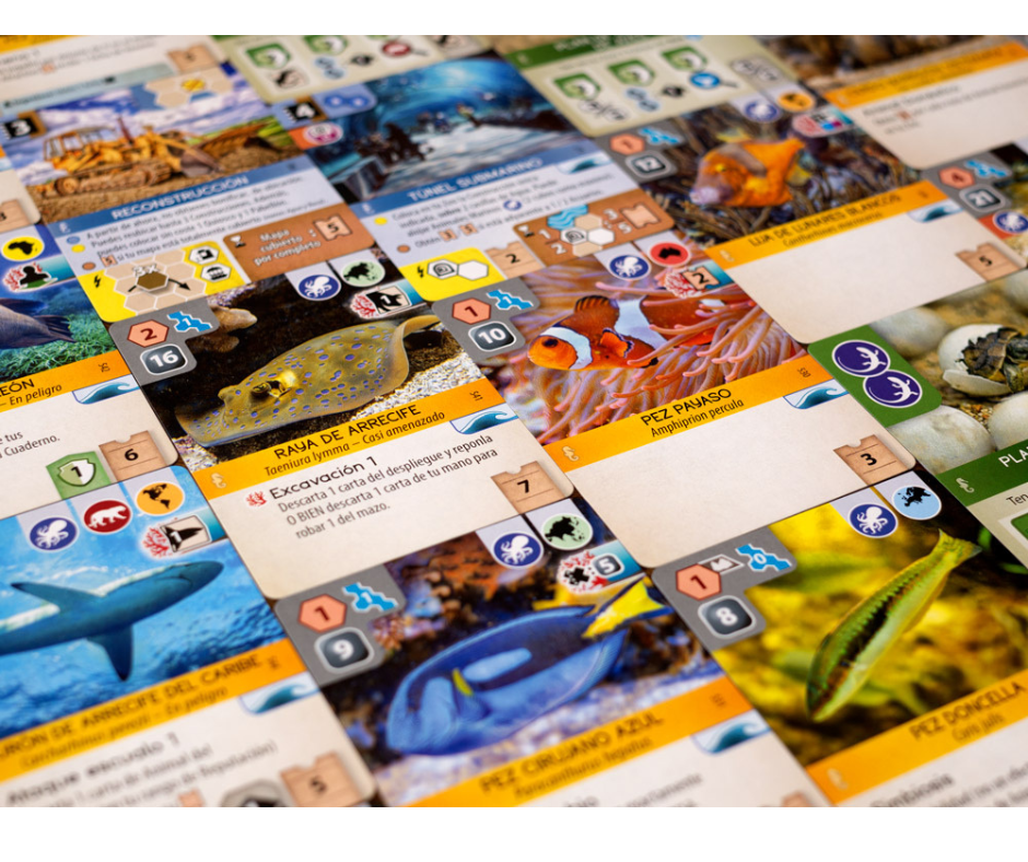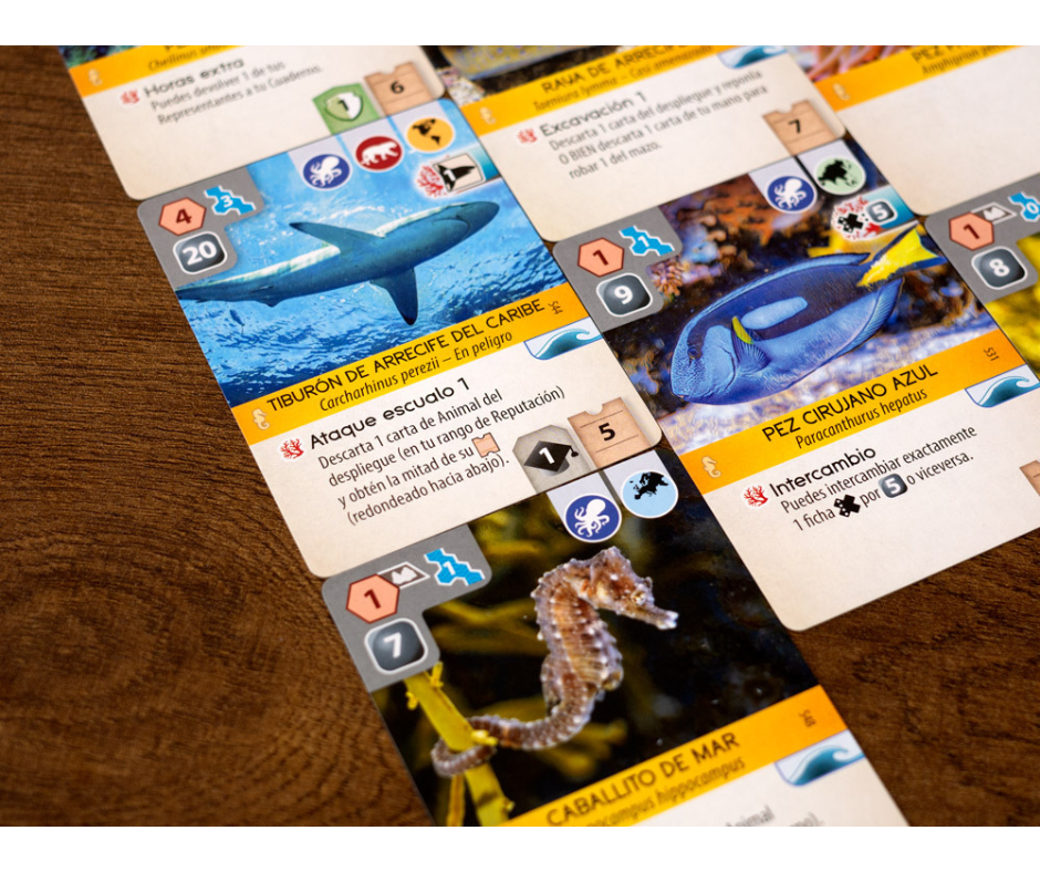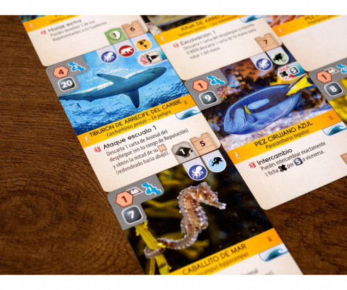 Aproximadamente la mitad de los animales marinos son habitantes de arrecifes, y cada vez que agregas un habitante de arrecifes a tu zoológico, activas la habilidad de todos los habitantes de arrecifes de tu zoológico. Para lidiar con la dilución del mazo, causada naturalmente por agregar más cartas, todas las cartas marinas tienen un ícono de ola, y cada vez que se revela en la pantalla, descartas la primera carta de la fila y luego repones.