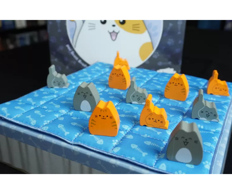 Cada vez que colocas un gatito en la cama, hace “boop”. Es decir, empuja a todos los demás gatitos del tablero a un espacio de distancia. Alinea tres gatitos en fila para convertirlos en gatos… y luego, consigue tres gatos en fila para ganar.