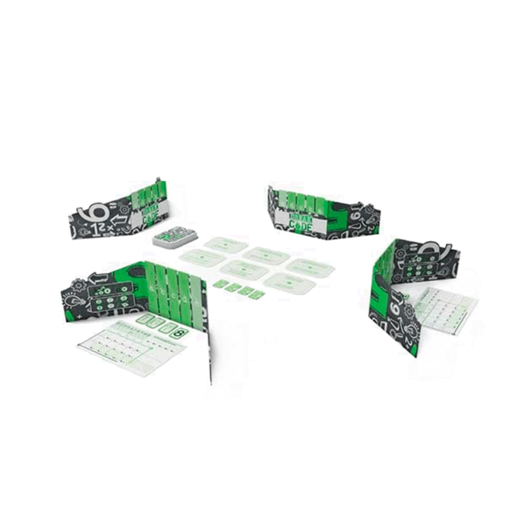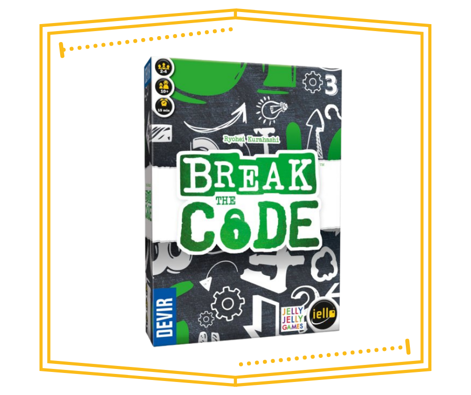 Break the Code es un juego de cartas de deducción lógica, que se juega con fichas de números y cartas de preguntas. Ganas si puedes adivinar todas las fichas de tu oponente en un juego de dos jugadores o si puedes adivinar las fichas boca abajo en el centro para un juego de tres o cuatro jugadores.