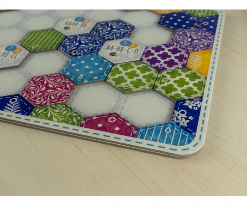 Para empezar la partida todos los jugadores deberán tener en su tablero tres requisitos de puntuación. Estos tres requisitos nos piden que los rodeemos con patrones diferentes, ya sea por color o estampado. De esta manera, si una ficha nos pide que todas las losetas de alrededor sean distintas podremos rodearla de colores distintos o estampados distintos, ya que encontramos seis colores y seis patrones en el juego.