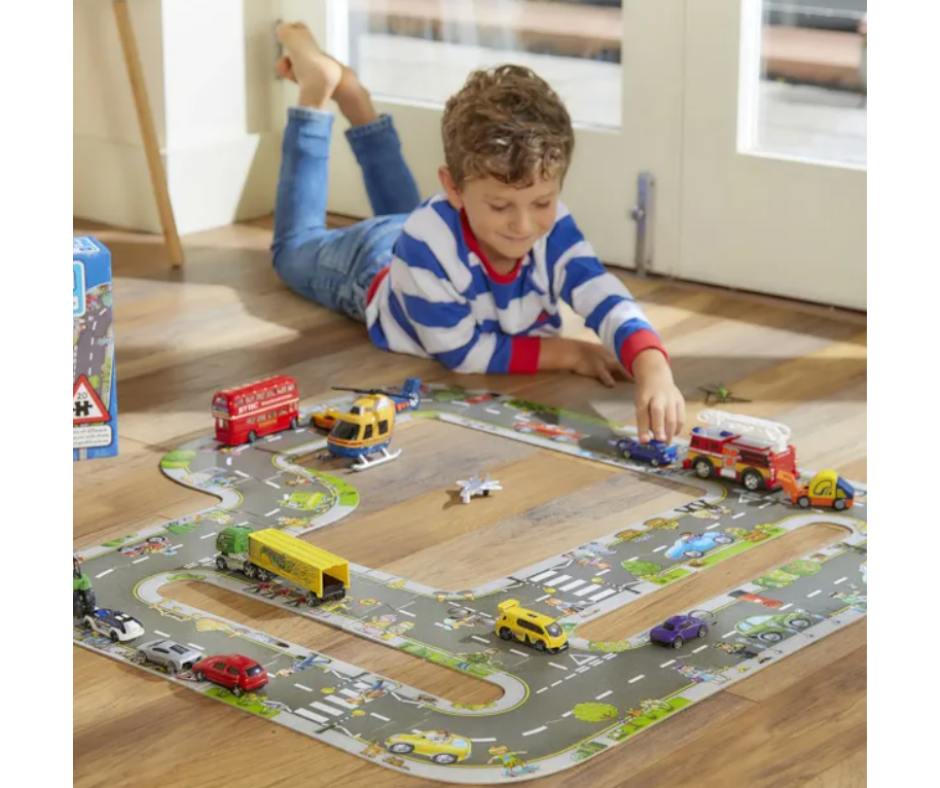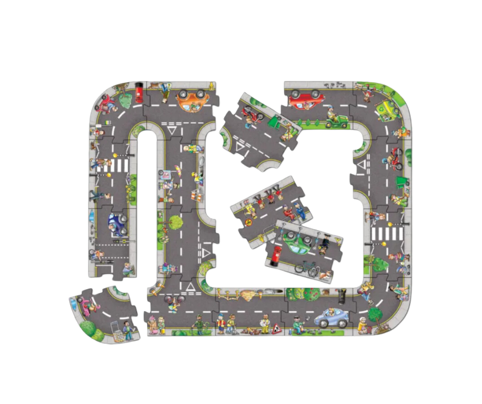 ¡Bienvenidos a la ciudad de tus sueños! Giant Road es mucho más que un simple rompecabezas: es una invitación a explorar, crear y aprender. Con sus 20 piezas de cartón resistente, los pequeños pueden construir calles, avenidas y rutas diferentes cada vez, diseñando su propia metrópolis en el suelo de casa.
