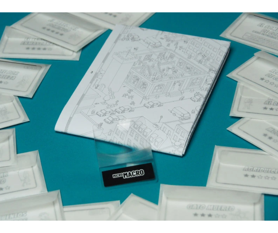 MicroMacro es un juego cooperativo de detectives. Juntos resolverán intrincados casos criminales, averiguarás cuáles han sido los motivos, encontrarás pruebas y encarcelarán a los culpables.