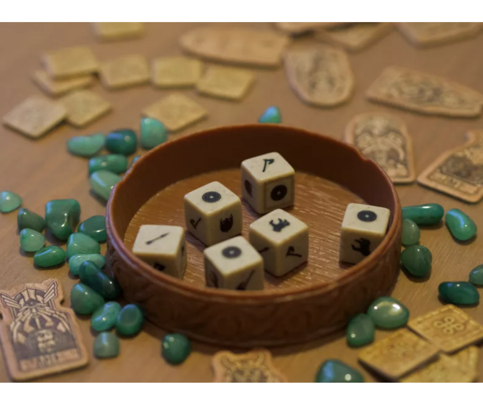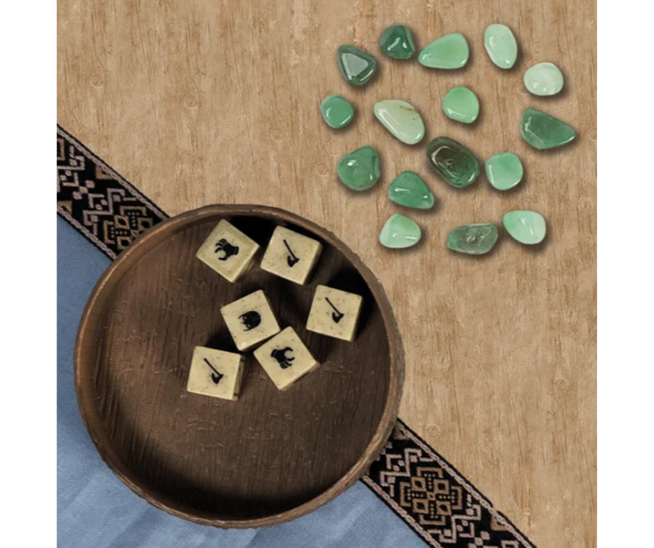 Mediante cuencos, dados, piedras y fichas, nos sumergimos en un duelo de 15 a 20 minutos. Con el lanzamiento de dados e invocando favores divinos, tendremos que reducir a cero las vidas del oponente para reclamar la victoria en sus tres modalidades.