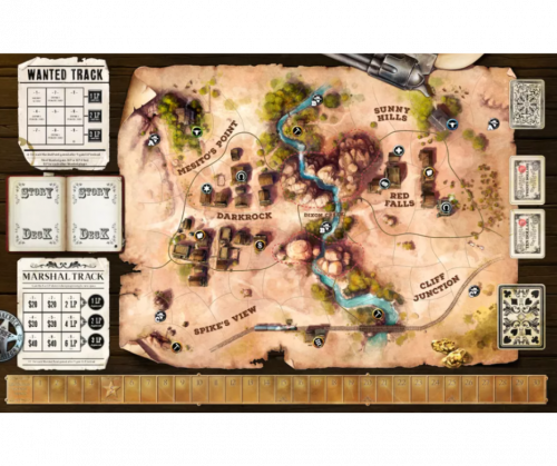 El turno de cada jugador comienza sacando cartas de póquer y/o ganando dinero en efectivo. Luego eligen tres acciones. Las posibles acciones incluyen: moverse en el mapa (la distancia depende de si tienen una montura), realizar una acción específica de la ubicación (como extraer oro si están en una mina de oro, apostar si están en un salón, etc.) .), luchar contra otros jugadores en el mismo lugar (ya sea en duelos, robarlos o arrestarlos si se les busca), jugar cartas de póquer que tengan habilidades de acción, etc. Los puntos legendarios (LP) se obtienen en función de los resultados de muchas de estas acciones, y el ganador es quien tenga más LP al final del juego.
