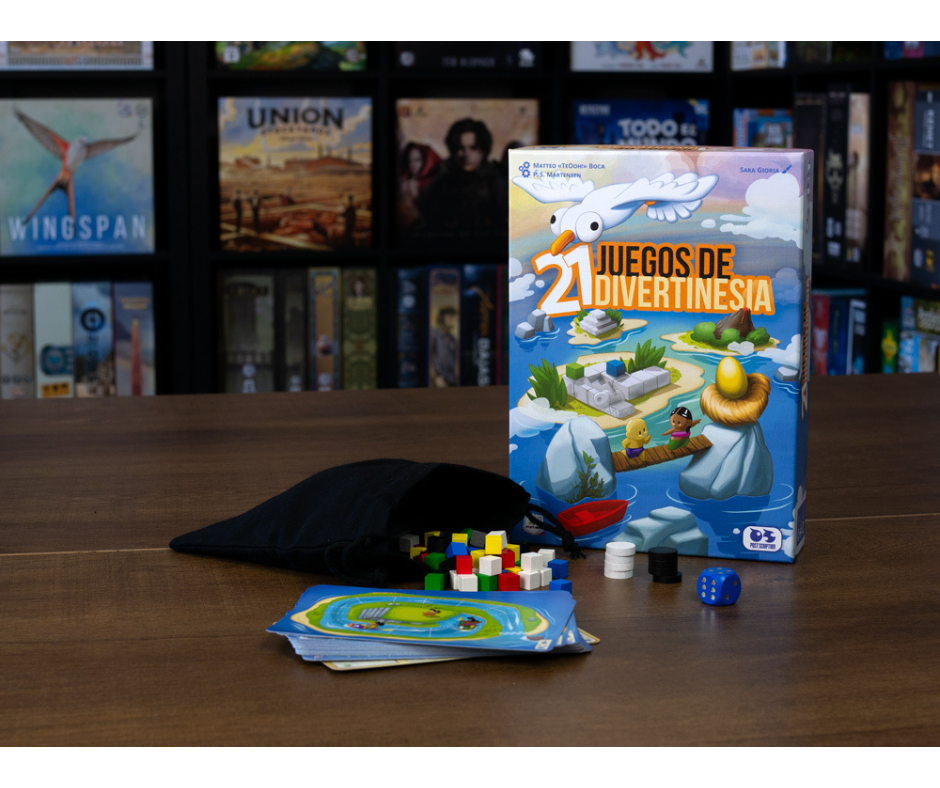 21 Juegos de Divertinesia es una auténtica LUDOTECA PORTÁTIL, compuesta por 21 JUEGOS COMPLETOS, diseñados para explorar todos los tipos de juegos de mesa modernos y adaptados tanto para nuevos jugadores como para los más experimentados.