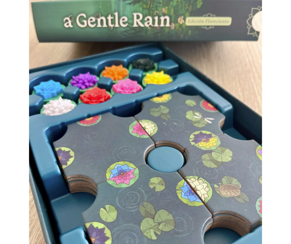 Disfruta: La partida termina cuando el lago está lleno o se acaban las fichas. No hay estrés, solo el sonido imaginario de la lluvia sobre el agua.