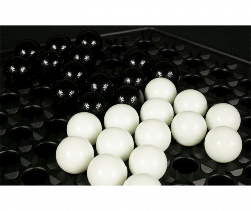 Gana su posición a tu adversario y empuja sus bolas hasta que caigan del tablero, si expulsas 6 de sus bolas antes que él lo haga con las tuyas, eres el vencedor.