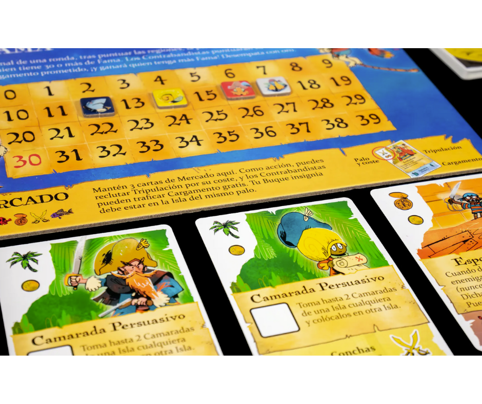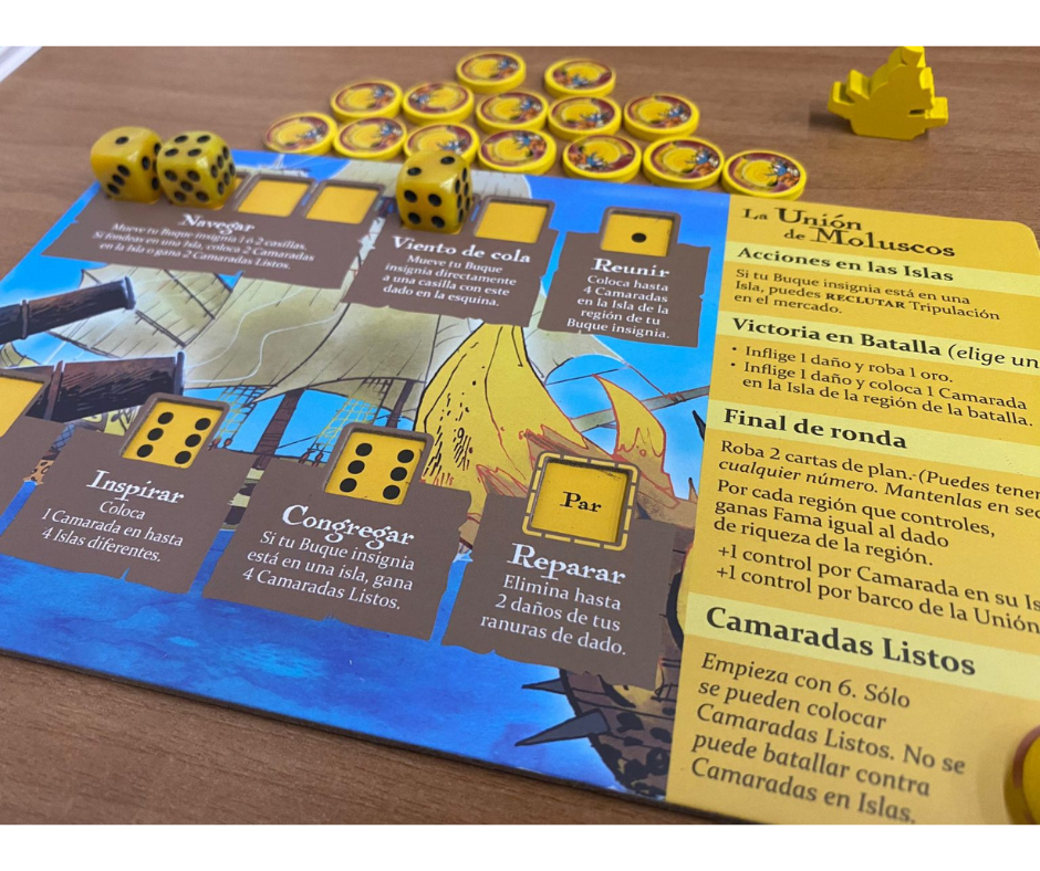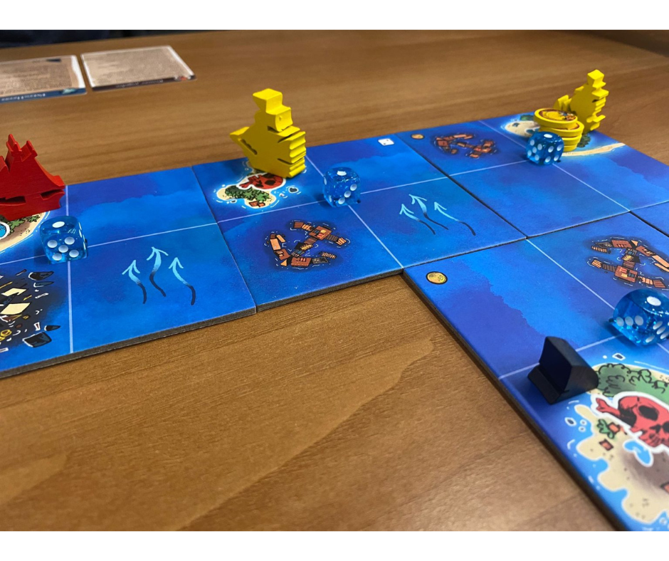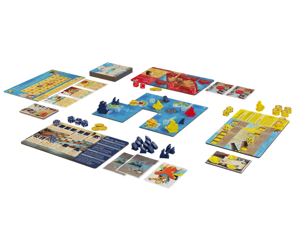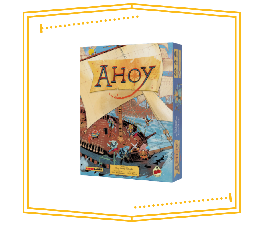 Ahoy, Un juego de Navegación y Contrabando. Son contrabandistas y soldados en alta mar. En cada ronda, lanzarás y colocarás dados para realizar las acciones exclusivas de tu facción. ¡Controla Regiones y entrega Cargamentos para conseguir Fama y ganar la partida!