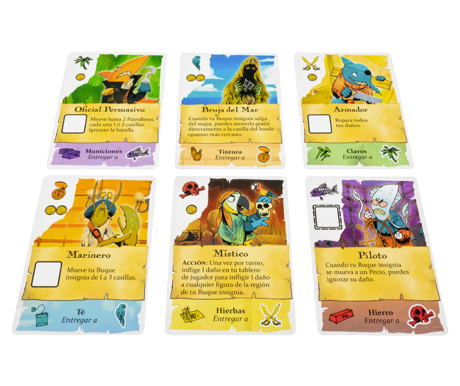 Juega como… El Escuadrón Aletazul, una compañía formada por tiburones y sus amigos con dientes, que mantienen el orden a tiro y espada. La Unión Molusco, una alianza de criaturas submarinas y sus leales camaradas, que luchan por recuperar su hogar. Los Contrabandistas, capitanes inconformistas que evaden bloqueos para entregar cargamentos a los más necesitados, o los más ricos.