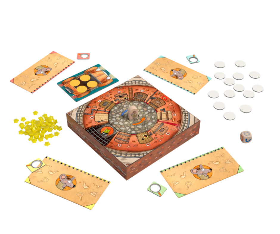 ¡Los malhechores pretenden fugarse! El comisario Ratónez les sigue la pista, pero necesita el olfato de sabueso de jugadores y jugadoras: ¿quién fue el último que estuvo en la celda donde se encuentra el túnel para la fuga?