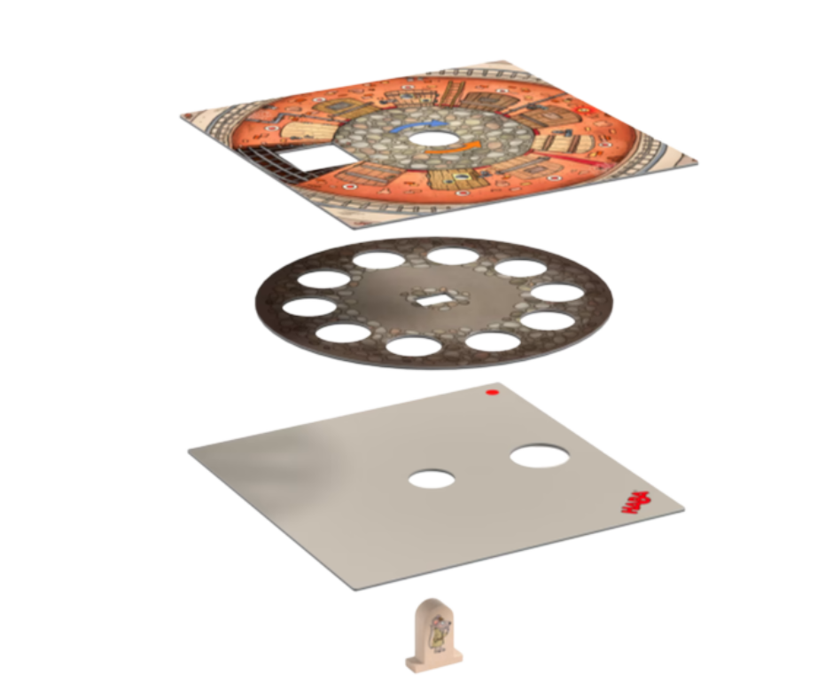 1 cárcel (base de la caja, 3 tableros de juego, cruz con los tabiques de las viviendas)