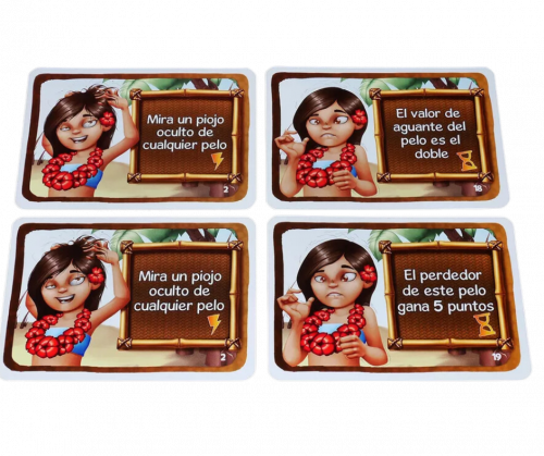Aloha Pioha es un juego de cartas donde cada jugador representa a una tribu de piojos Hawaiianos. Jugando con nuestros piojos intentarás conseguir la victoria en cada uno de los pelos de Pualani. ¡Jugar sabiamente y al final de la partida el jugador que tenga más pelos y más limpios será el vencedor!