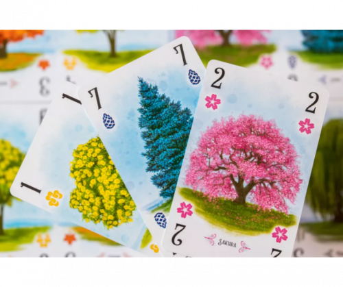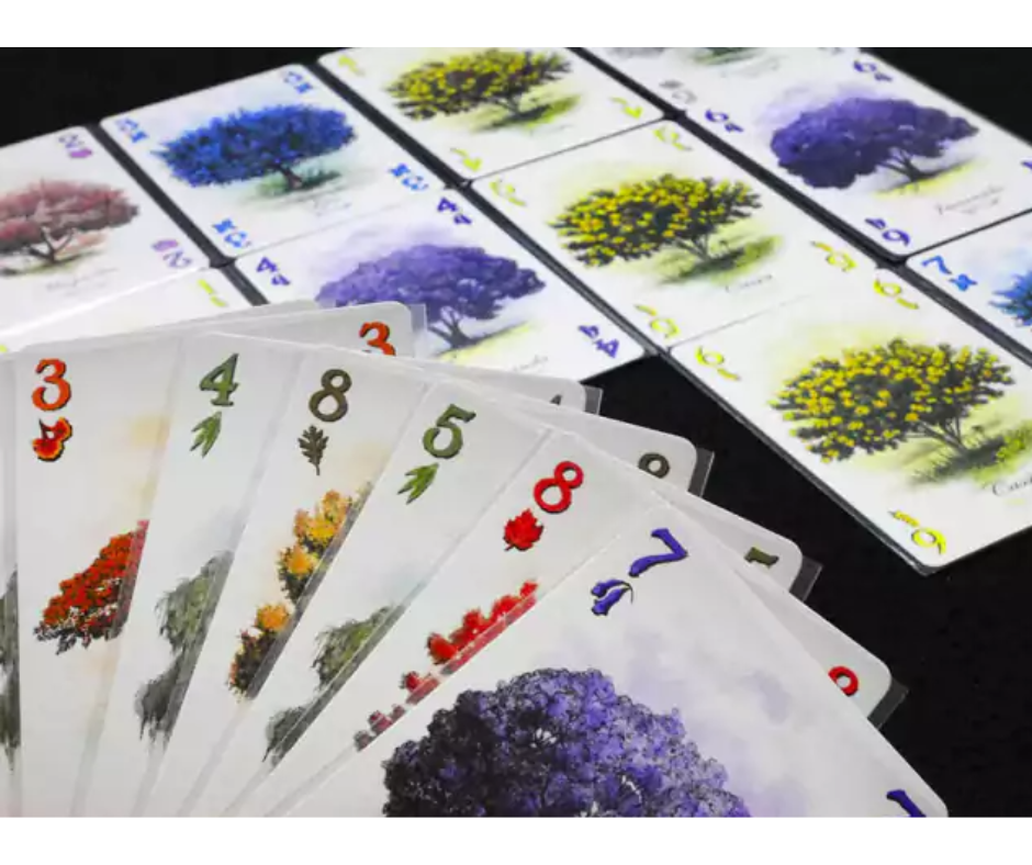 La baraja tiene cartas en diez colores diferentes, y cada color presenta una especie diferente de árbol; cada color tiene cartas numeradas del 1 al 8, y la cantidad de colores utilizados depende de la cantidad de jugadores.