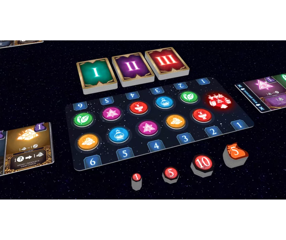 En un turno, los jugadores seleccionan una sola carta de la pila que se les pasa. Una vez que se ha seleccionado una carta, los jugadores pasan las cartas restantes en el sentido de las agujas del reloj, luego eligen si agregar la carta recién adquirida a su tablero o descartar la carta para hacer funcionar su motor y lanzar sus hechizos. Las fichas de luna aleatorias les dicen a los jugadores cuál de sus hechizos se puede lanzar. Por lo tanto, el momento de ejecutar tus poderes es casi tan importante como los propios poderes.