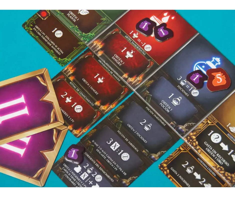 Las cartas pertenecen a las escuelas de Encantamientos, Herbología, Artes de sangre, Pociones, Alquimia y Artefactos. Solo se puede lanzar un único tipo de hechizo cada turno, dependiendo de un orden aleatorio para esa ronda.