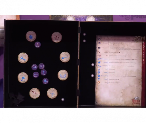 La propia caja forma el ilustre Grimorio; la guía del narrador de cada juego.