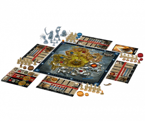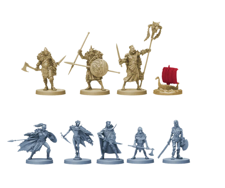 En Blood Rage , cada jugador controla los guerreros, el líder y el barco de su propio clan vikingo. Ragnarök ha llegado, ¡y es el fin del mundo! ¡Es la última oportunidad de los vikingos de descender en un resplandor de gloria y asegurar su lugar en Valhalla al lado de Odín!