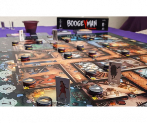 Boogeyman el juego de mesa es un juego semicooperativo con miniaturas con mecánicas de movimiento oculto, draft de cartas y un minijuego final que determinará el ganador de la partida.