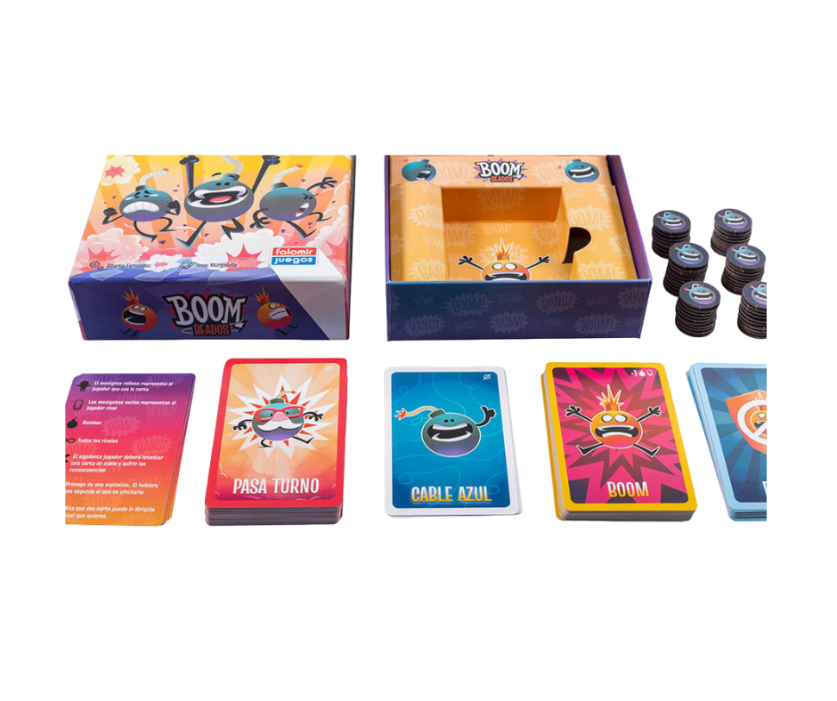 En el turno activo, habrá que elegir entre jugar una carta de defensa (cartas de equipo) o una de ataque (cartas de boom para explotar las bombas del otro), y la suerte también estará presente con los dados.