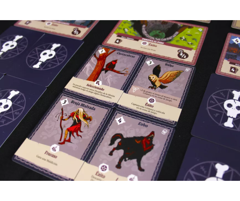Al principio del juego, reúnes un aquelarre de brujas de familias de mujeres representadas por una baraja de cartas. Seleccionar varias brujas de una familia hace que esa familia sea más poderosa. Cada familia se centra en diferentes tareas en el juego: revelar desafíos, aumentar el poder de ataque, descubrir la condena de los jurados o capturar familiares para que te ayuden en tu lucha. La lucha es real y cada uno de los ocho jurados se enfrenta a un villano diferente. ¿Será el Jinete sin Cabeza, Baba Yaga, el Espantapájaros o algún otro demonio?