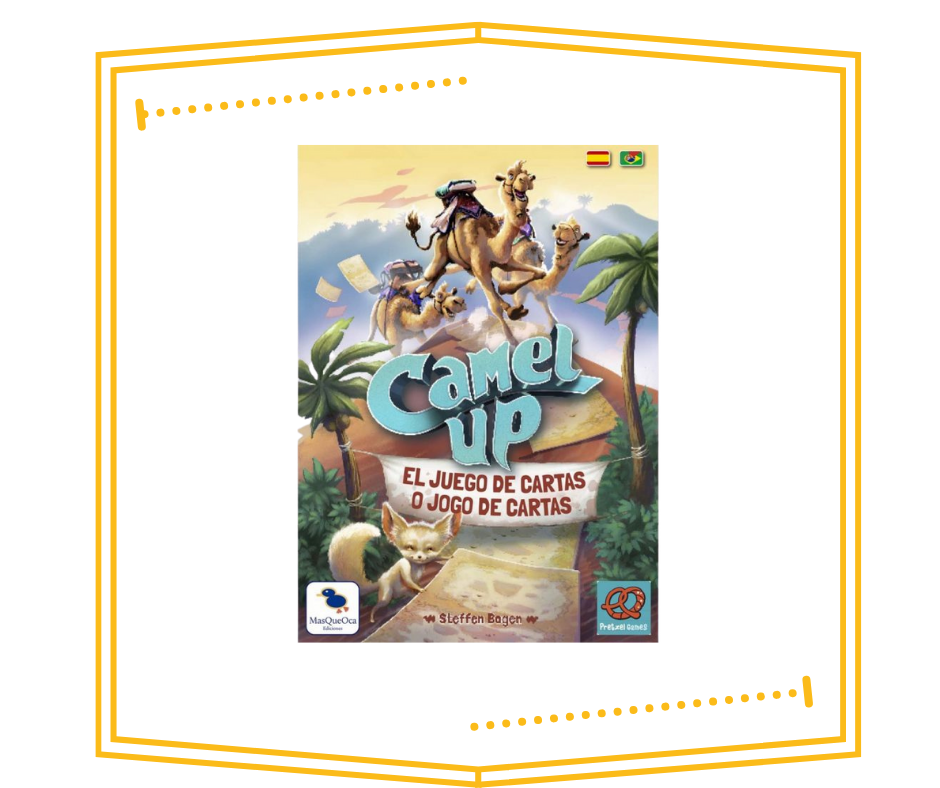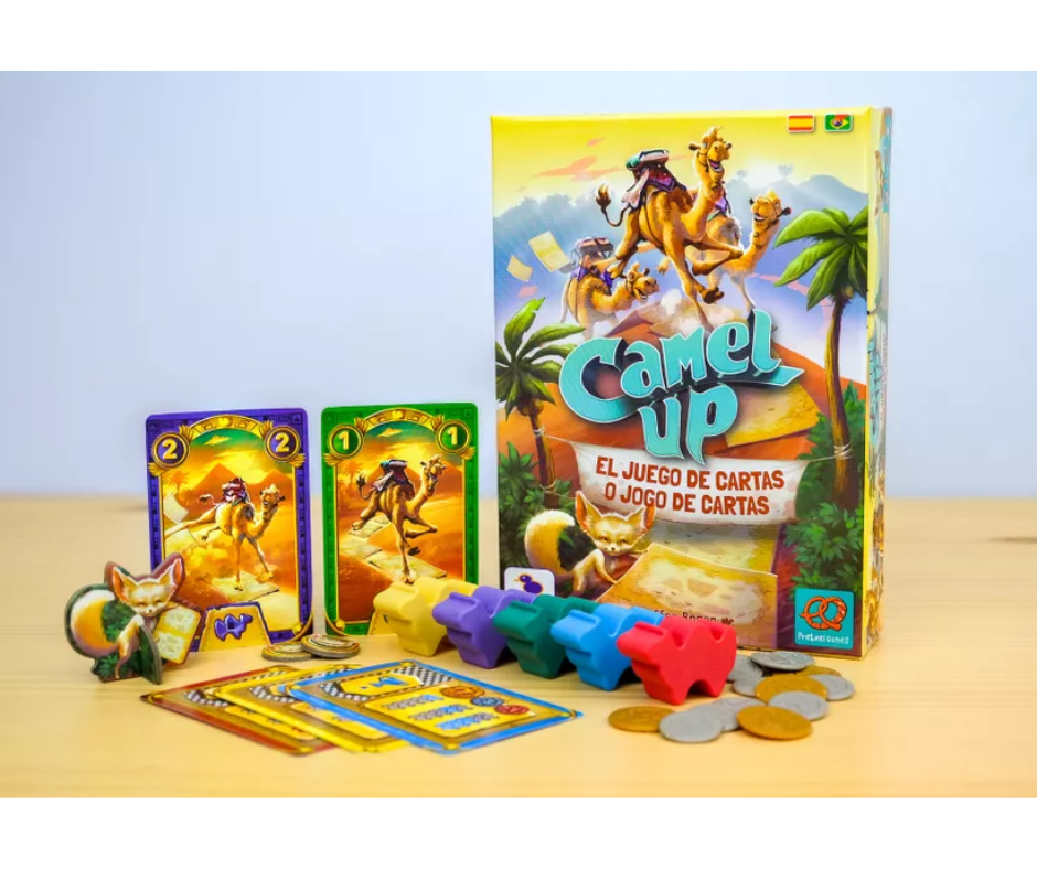 Camel Up es un juego principalmente de apuestas y probabilidades sobre una peculiar carrera de camellos. Cada uno de los jugadores interpreta a un aristócrata dejándose los cuartos en intentar prever que camello cruzará la línea de meta en primer lugar (y también en último).