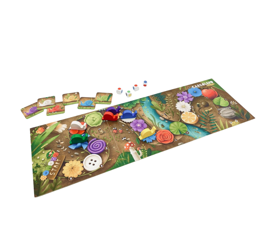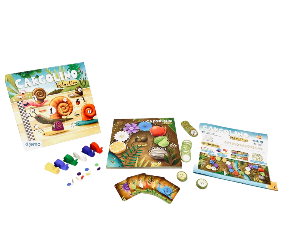 Cargolino Valentino es un juego de Eugeni Castaño. Es un juego familiar muy divertido en el que vamos a ser caracoles de carreras que compiten por ser el último en llegar a la meta.