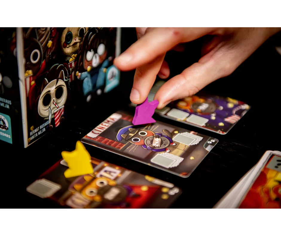 Objetivos Desafiantes: Al principio de la partida, se revelan 3 objetivos aleatorios. Cada carta de objetivo te indicará exactamente cuántas películas diferentes necesitas y cuántos rollos de cada una para completarlo. ¡Es un puzle constante!