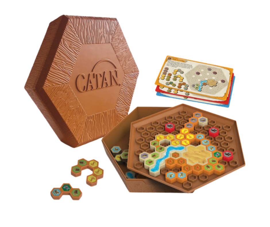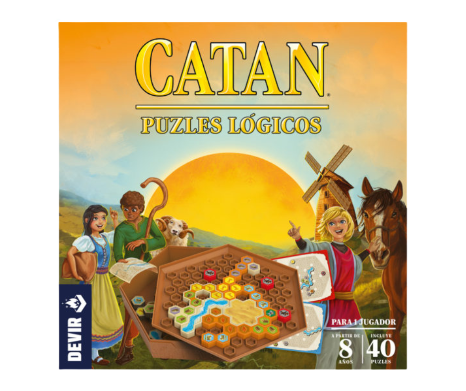 A través de 40 rompecabezas, distribuidos en 4 niveles distintos de dificultad, Catan Puzle ofrece horas de diversión y todo un reto para las mentes más exigentes. Las emblemáticas losetas hexagonales encajan en un tablero tridimensional que a la vez sirve como caja del juego, cosa que nos facilitará llevarlo como complemento lúdico ideal si nos vamos de viaje.