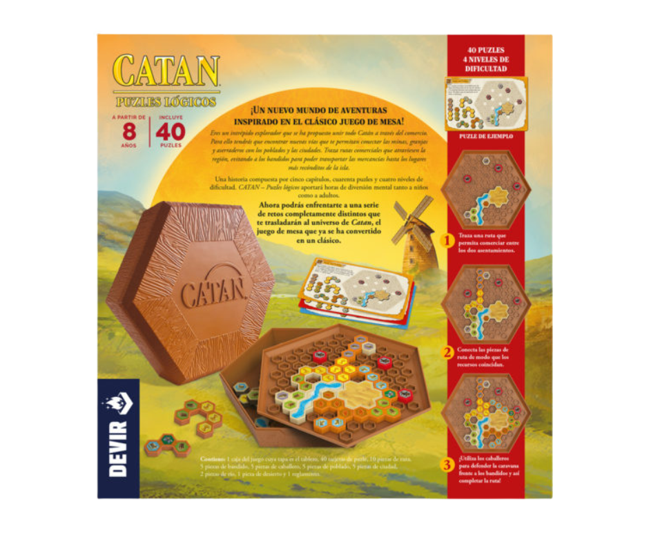Por primera vez en la saga de juegos de Catan, este título no pondrá a prueba nuestra capacidad de negociación o la habilidad para sumar puntos de victoria más rápido que nuestros oponentes. En esta ocasión, Catan nos reta a superar acertijos cada vez más complejos solo con la ayuda de nuestro ingenio. Como si realmente fuéramos uno de los primeros colonos que llegaron a la todavía inexplorada isla de Catan, deberemos abrir rutas comerciales entre bosques y montañas, ríos y desiertos, ciudades y asentamientos.