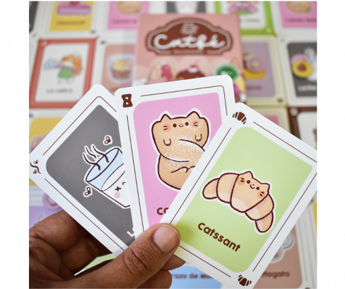 En Catfé, Moka, la gata pastelera, ha abierto un café temático gatuno y busca a los mejores chefs para su éxito. Tu misión es preparar la mayor variedad de postres bajo presión, mientras compites y saboteas a tus oponentes para demostrar que tu menú es el más creativo. El primer jugador en reunir 4 postres (en partidas de 2-3 jugadores) o 5 (en 4-5 jugadores) se corona como el chef indiscutible del Catfé, ¡pero cuidado! Si presentas demasiados postres iguales, Moka no lo tolerará y podrías perder la partida.