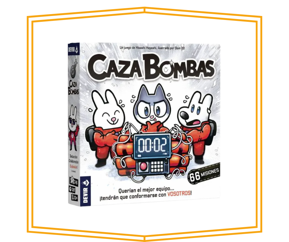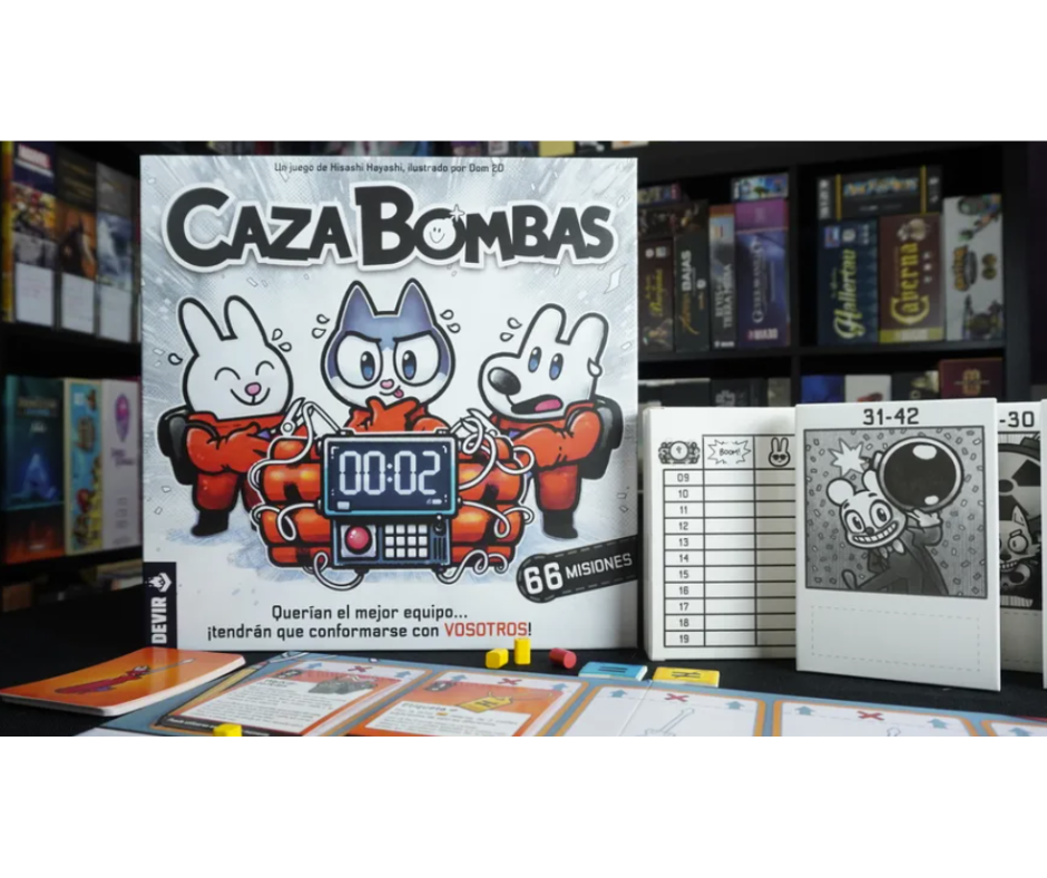 Caza Bombas es un juego cooperativo brillantemente donde la clave es la deducción y la comunicación no verbal. Formarás parte de un equipo de élite con el objetivo de desactivar la bomba antes de que el detonador llegue a la calavera. ¿Cómo? Cortando correctamente todos los cables azules (y a veces los amarillos) sin tocar ni un solo cable rojo.