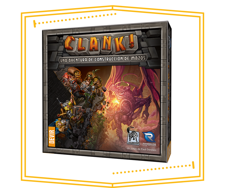 En Clank!, además, veremos que las cartas que jugamos cada turno también afectan al tablero que representa la mazmorra, donde nuestros héroes encontrarán diferentes salas con obstáculos, enemigos a los que enfrentarse y tesoros que recolectar.