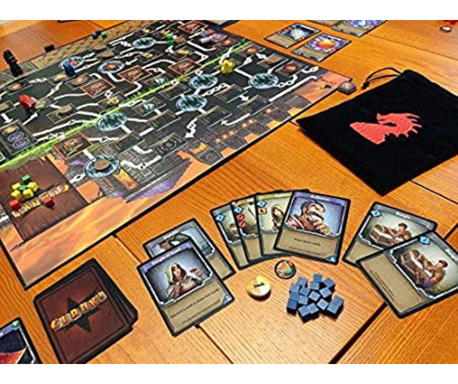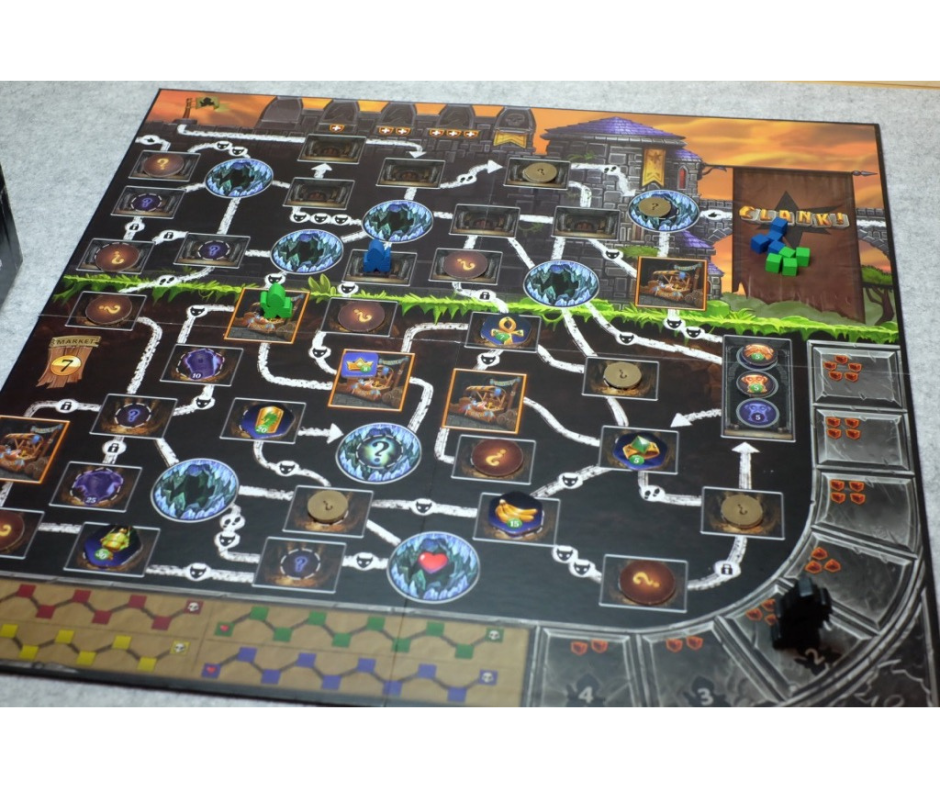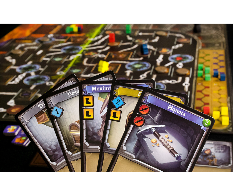 ¡Descubre reliquias y oro dentro de las cuevas del dragón! Es básicamente una carrera por entrar y salir de la mazmorra con los tesoros más valiosos, mientras gestionamos un mazo de cartas con el que nos movemos por el tablero.