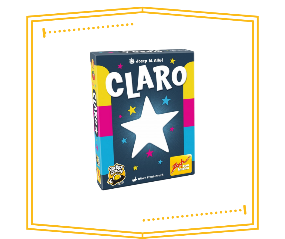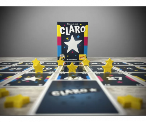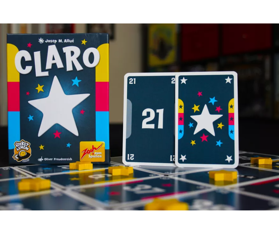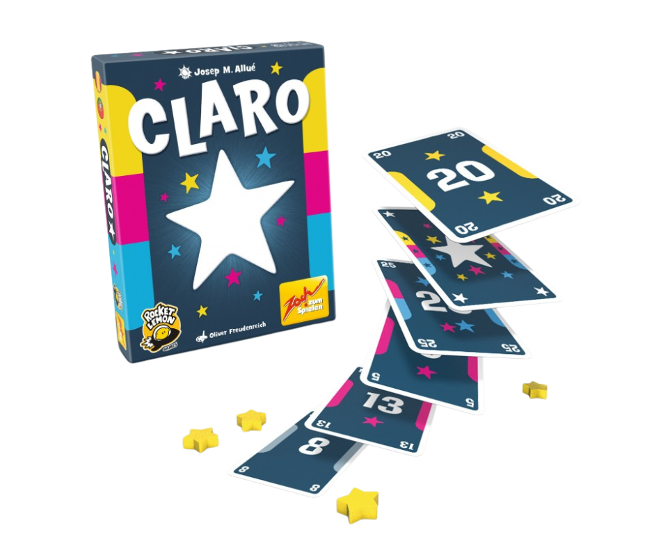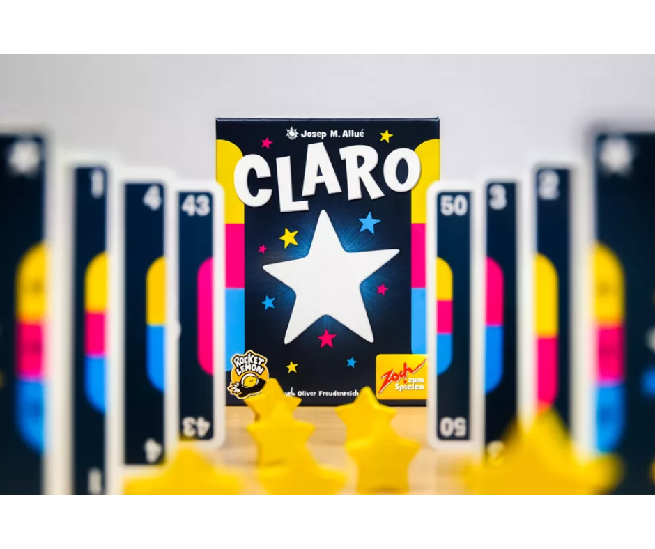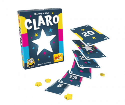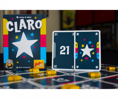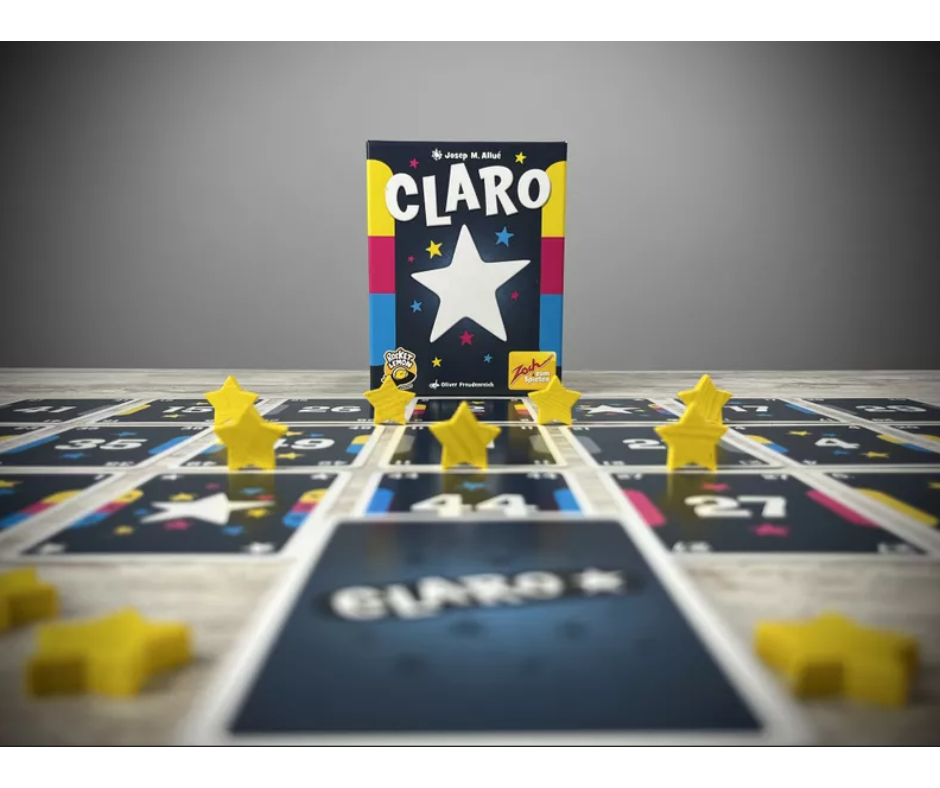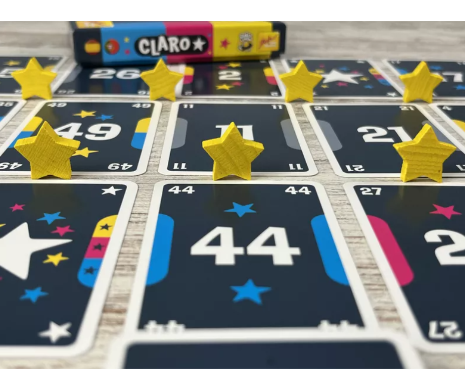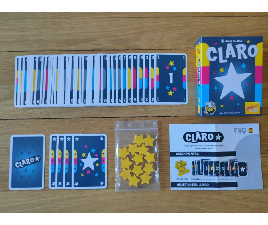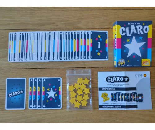 Claro es un filler de cartas en el que el objetivo es ganar 3 estrellas. Lo más difícil de Claro es encontrar un juego más sencillo.