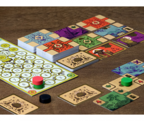 En el juego, cada jugador comienza con una sola carta sobre la mesa, una carta que muestra alguna combinación de los cuatro recursos posibles en el medio de la carta, en las esquinas de la carta o en ambas. Los jugadores también tienen dos cartas de recursos y una carta dorada en la mano, mientras que dos de cada tipo de cartas están visibles en la mesa.