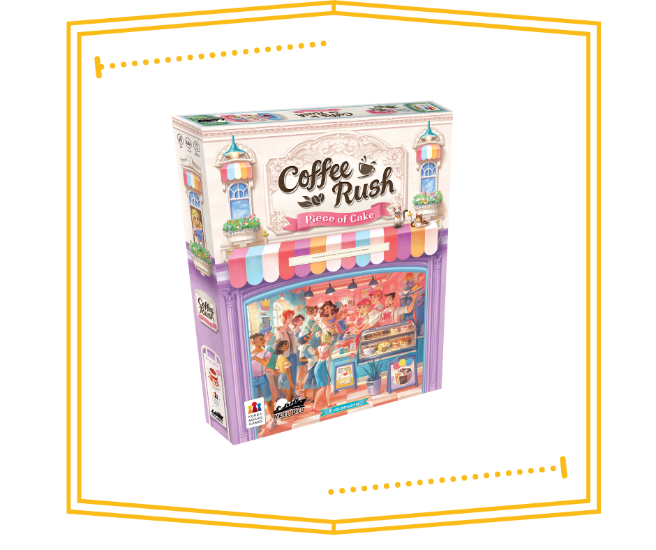 La expansión Coffee Rush: Piece of Cake hace que los jugadores cumplan nuevos pedidos con la ayuda de tarjetas de pastel. Agrega nuevos tableros de jugadores, nuevas tarjetas de pedidos, hermosos pasteles en 3D y nuevas actualizaciones.