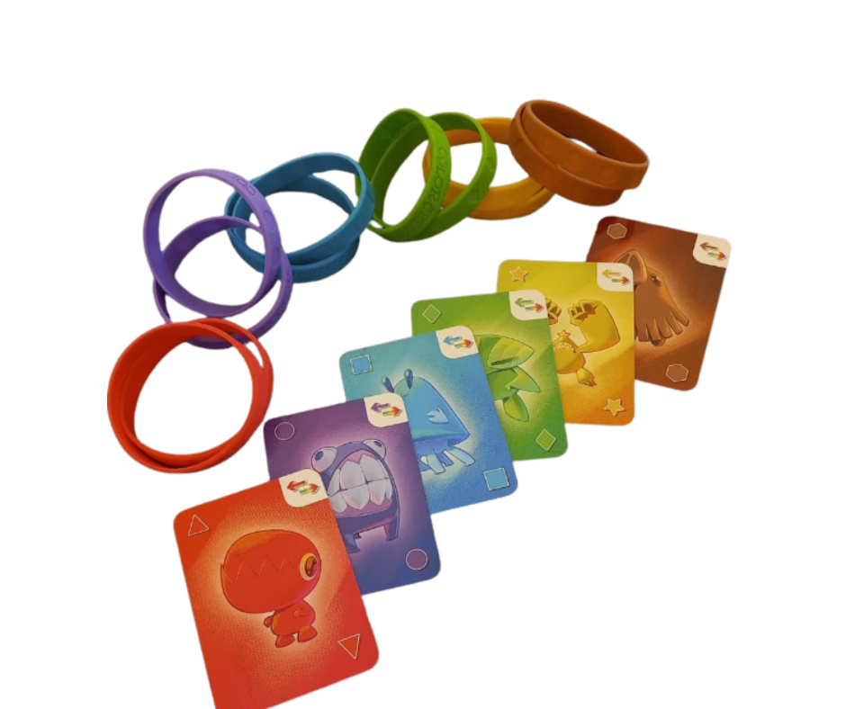 Debes identificar rápidamente la combinación de colores que puedes formar con tus brazaletes y ser el primero en tocar la carta correcta. Un instante de duda es una oportunidad para tu rival.