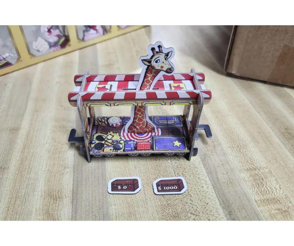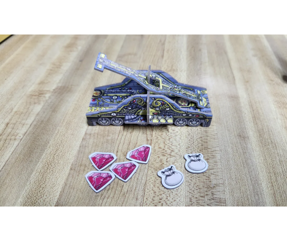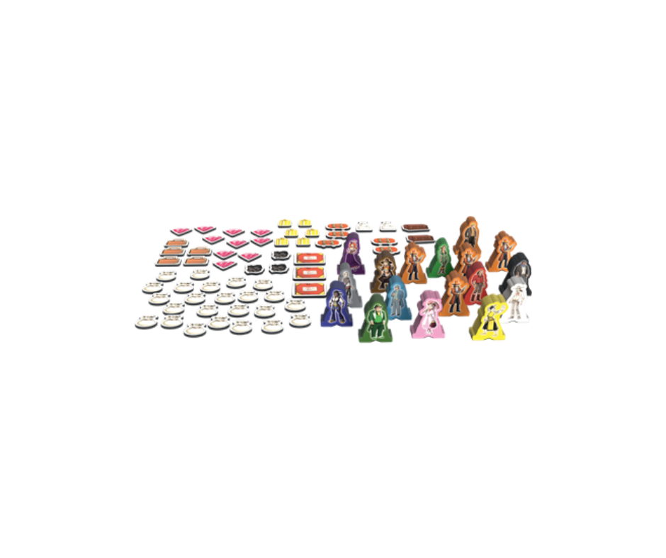 Componentes Deluxe: Di adiós al cartón. La caja incluye 60 fichas de botín de madera y 17 figuras de personaje de madera serigrafiadas para sustituir los componentes originales. Un verdadero placer visual.