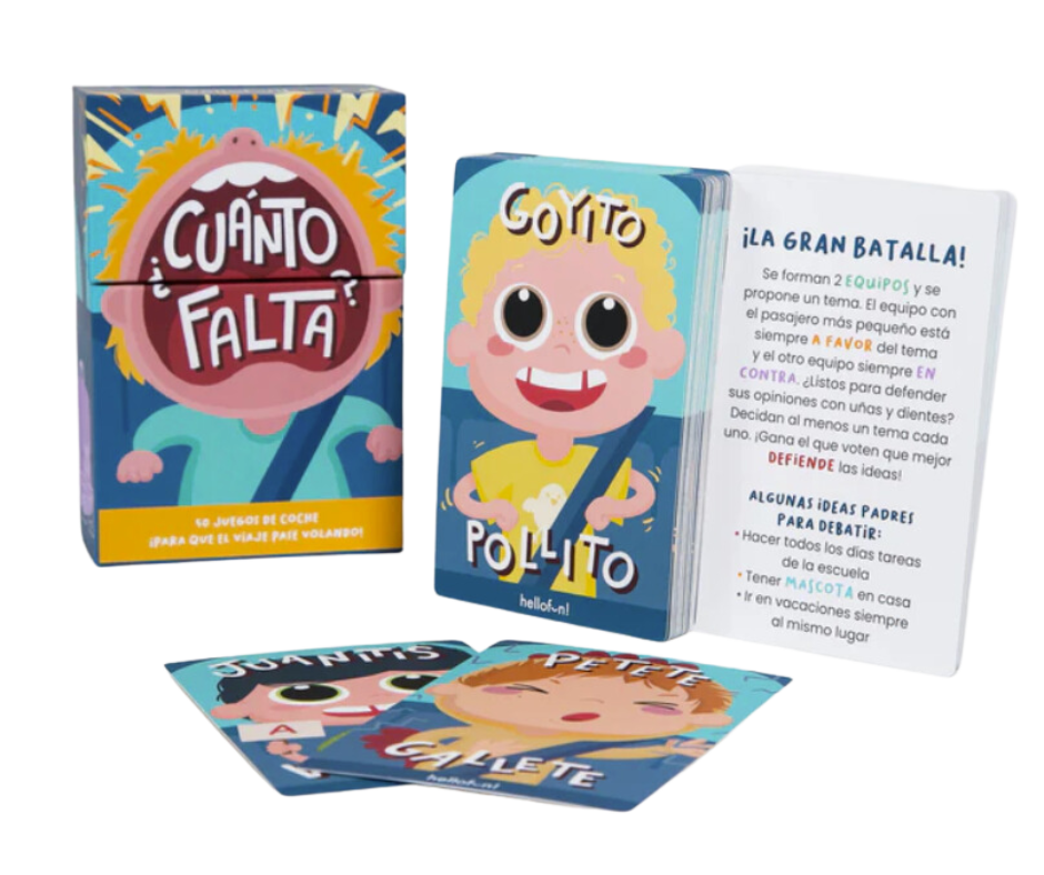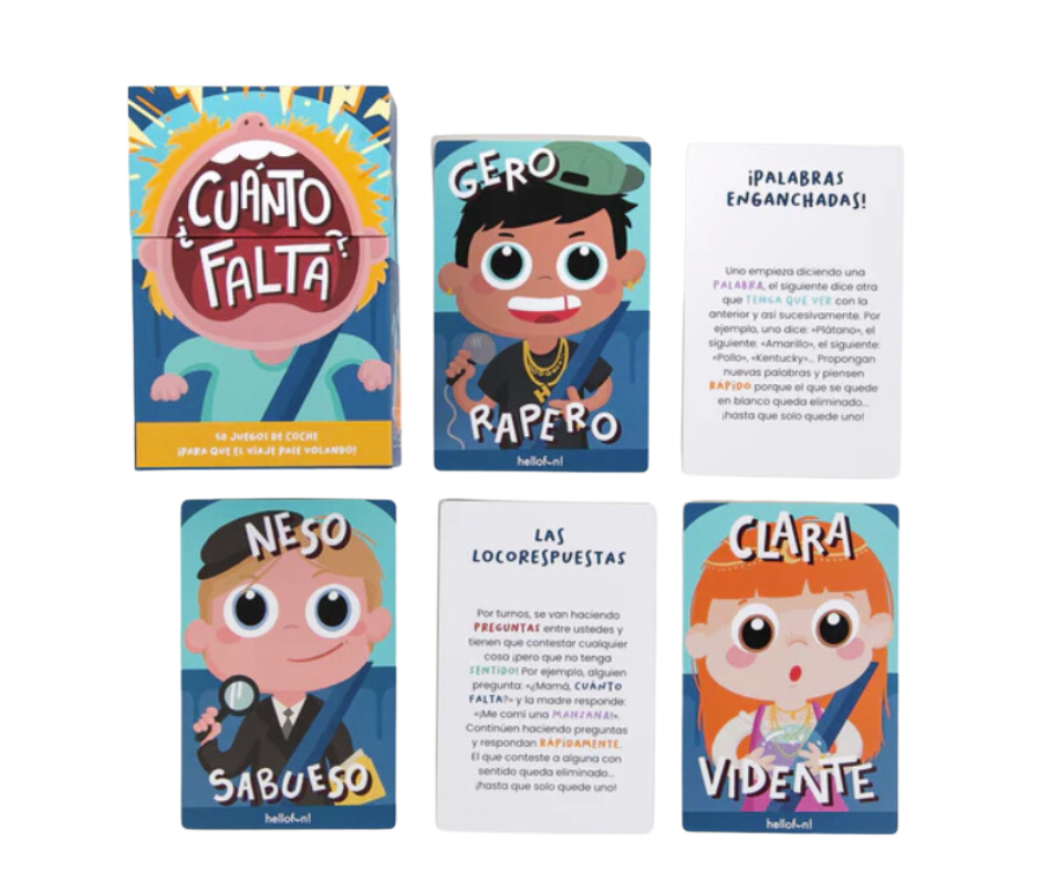 Con ¿Cuánto falta? finalmente se acaba el aburrimiento durante los viajes, gracias a 50 juegos nuevos que mantendrán entretenida a toda la familia. ¡No querrás que el viaje termine! Cambia las cosas de lugar con Neso Sabueso e intenta que los demás no se den cuenta, demuestra tus habilidades en freestyle con Gero el Rapero, inventa las preguntas más disparatadas con Manuela Loculela… ¡y mucho más!