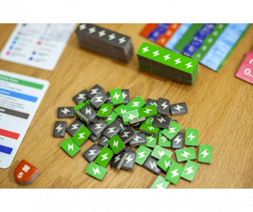 Gestión de Emisiones: Al inicio, las fichas de energía sucia y la producción de cubitos de carbono son abrumadoras. Afortunadamente, los árboles y los océanos iniciales absorben parte de esos cubitos, dándoles un respiro. Pero si los cubitos de carbono superan la capacidad de absorción, ¡irán directos al termómetro global.