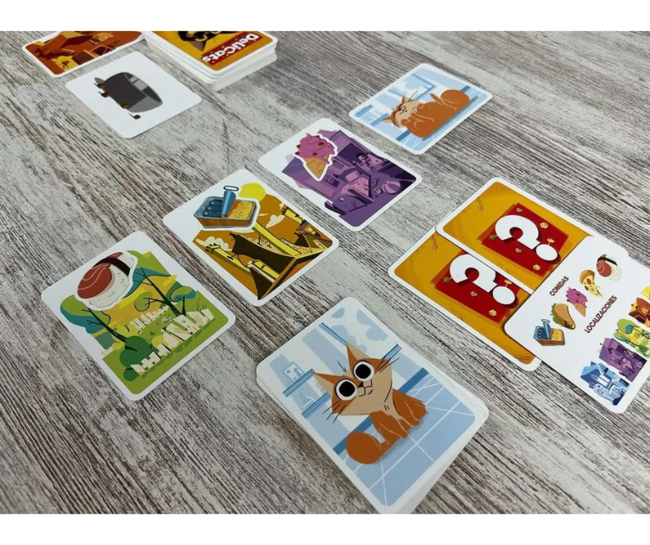 DeliCats es un juego cooperativo de deducción y lógica en el que tendrás que investigar a los gatos de tus vecinos y descubrir sus delicados gustos gatunos. Incluye un calendario de misiones, ordenadas de menor a mayor dificultad, que varía la experiencia de juego con pequeños cambios en las reglas y modifica su lógica y su estrategia.