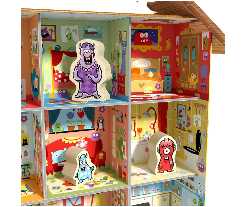 Los niños y niñas ayudan a esta familia de monstruos a pillar a Wanda en su bulliciosa y colorida casa. Colocan cada monstruo en una habitación determinada y descubren con habilidad dónde se esconde Wanda.