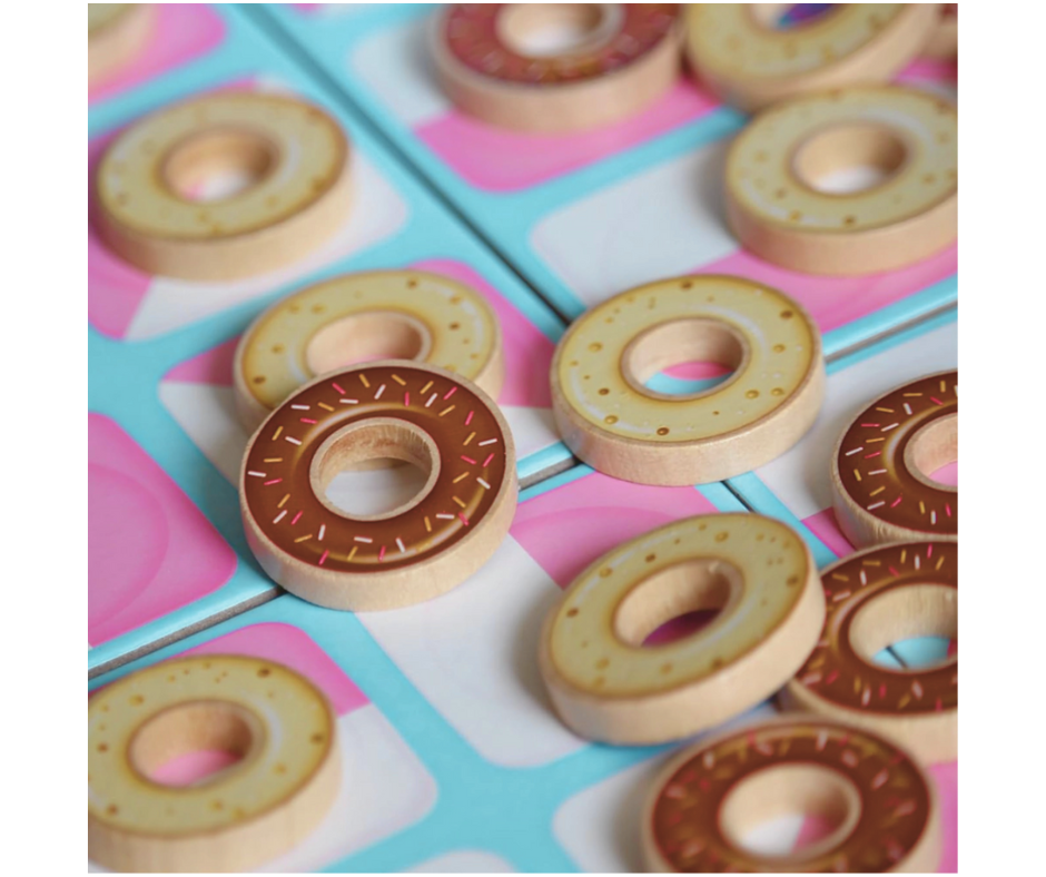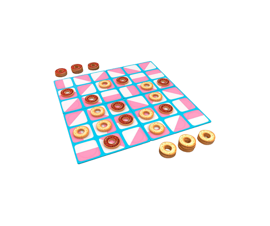 El objetivo del juego es conseguir alinear 5 fichas impidiendo al oponente que convierta tus donuts a su sabor al insertar uno de los suyos en tu línea previa. El primer jugador coloca uno en la casilla de su elección.