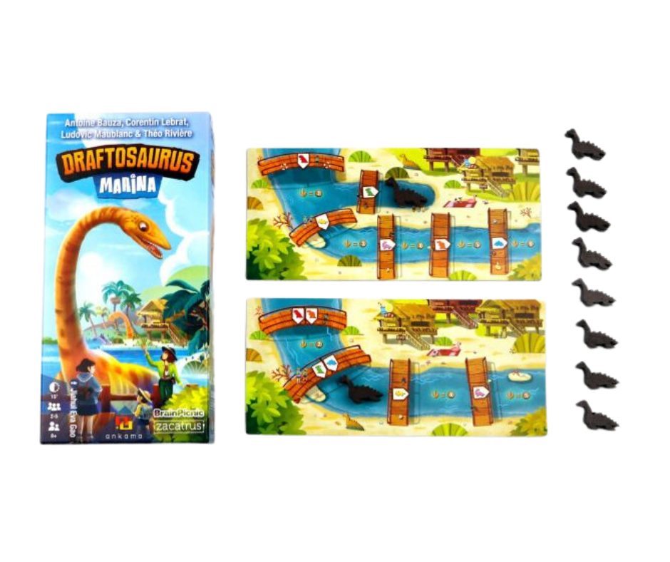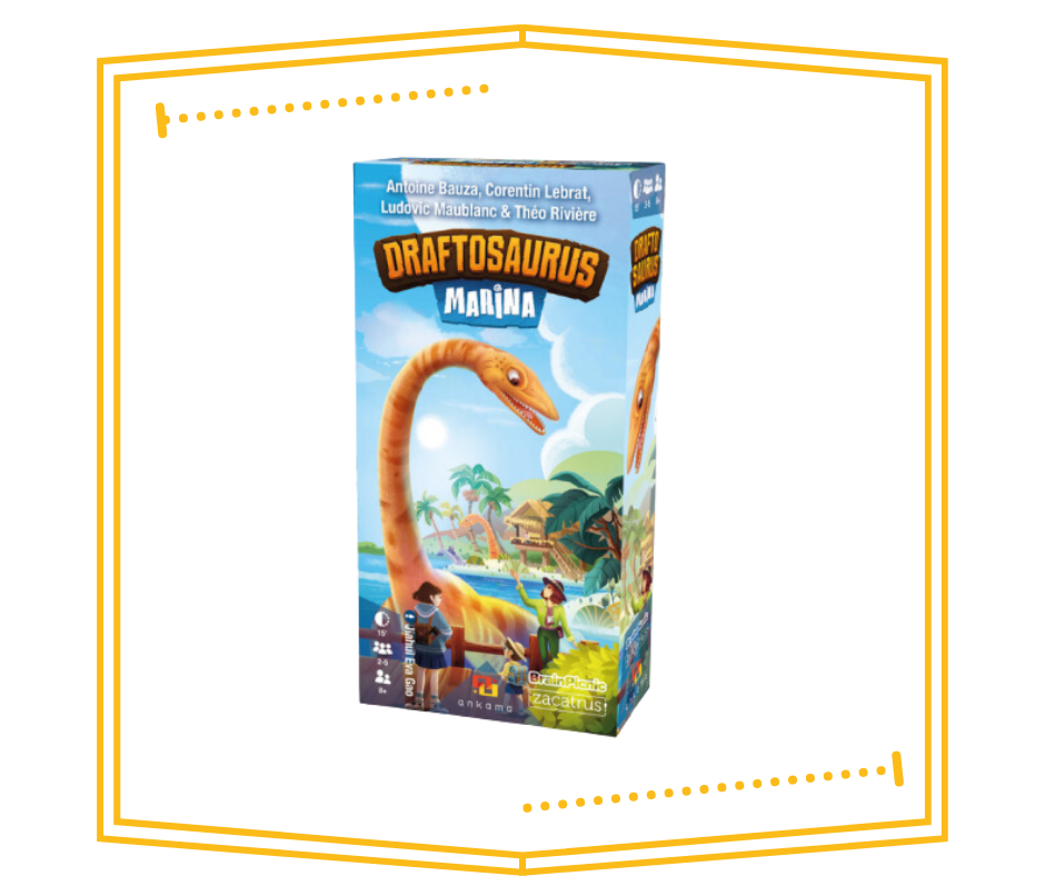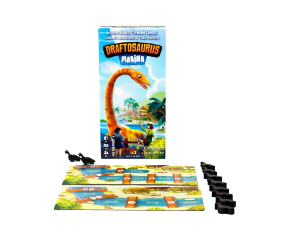 Draftosaurus Marina es una de las dos espansiones de Draftosaurus, el juego de dinosauros más vendido.
