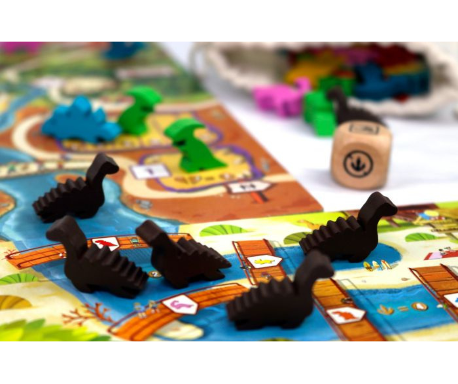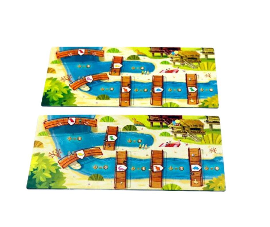 Esta expansión para Draftosaurus agrega un nuevo tablero de doble cara que cada jugador puede combinar con su parque existente para agregar una nueva zona de río. Los plesiosaurios son los únicos dino-meeples que se pueden colocar en esta parte del río, otorgando puntos al final del juego. Para mover tu plesiosaurio río abajo y ganar más puntos, ¡debes colocar otras especies específicas en tu parque para desbloquear las presas una por una!