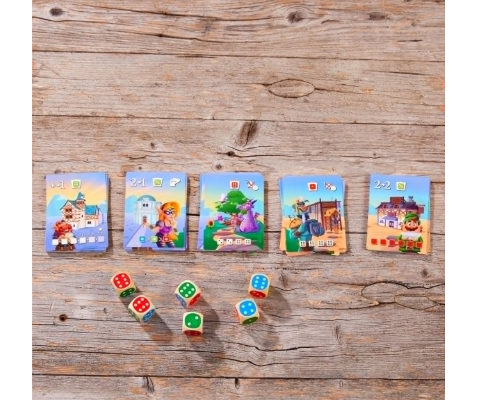 Utiliza los dados, piensa bien en tu estrategia, y trata de que tu reino se llene a rebosar de nuevos y valiosos habitantes. ¿Quién obtendrá la mejor puntuación? ¿Conseguirás conquistar todo el tablero?