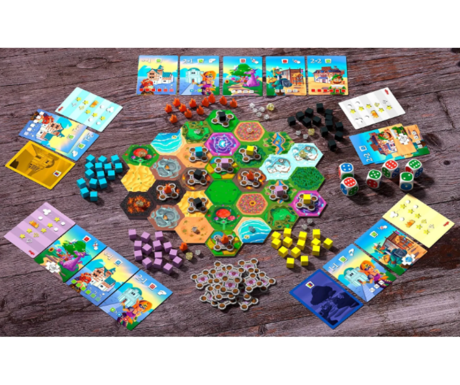 Con habilidad y suerte, los jugadores tiran los dados para conseguir los mejores nuevos ciudadanos y ocupar tantos espacios conectados en el mapa como sea posible.