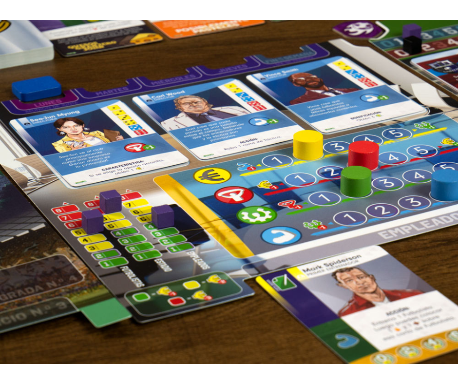 270+ cartas (Empleados, Directores, Tácticas, Oponentes, Reunión de Junta…)