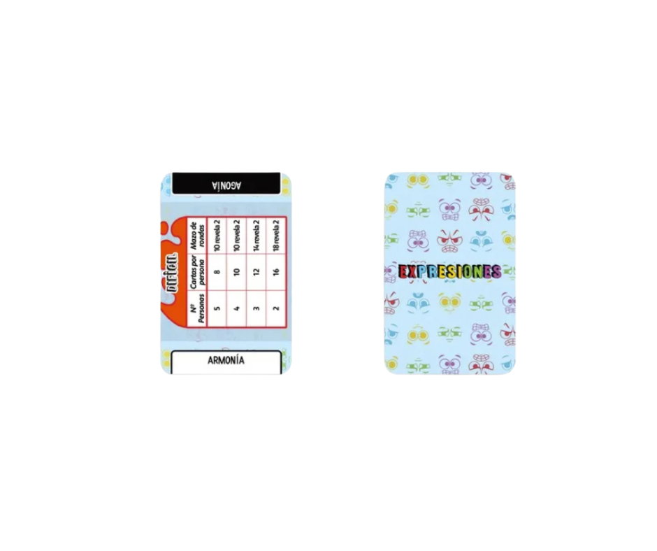 Expresiones es un delicado baile entre dar pistas con astucia y descifrar las intenciones ocultas de los demás. Cada vez que juegas una carta para dar una pista, estás incrementando un poco la Agonía del equipo, lo que añade una capa constante de tensión y riesgo. Tienes que ser muy estratégico con las sugerencias que das y con las deducciones que intentas.
