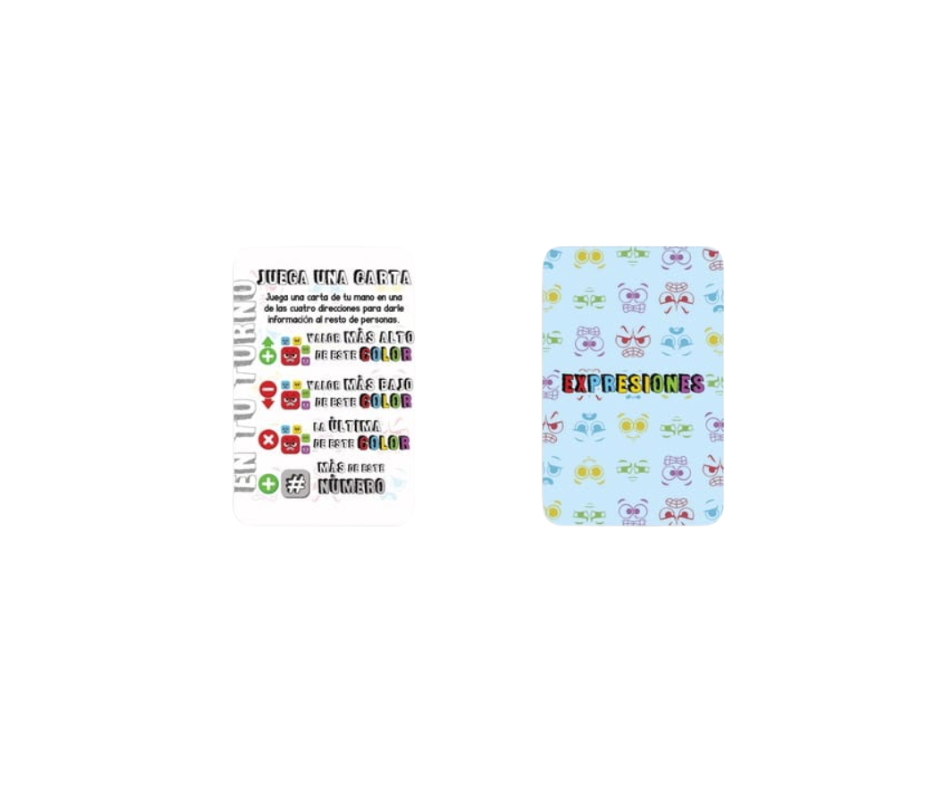 Jugar una Carta: Elige una carta de tu mano y colócala frente a ti. La magia de Expresiones reside en la forma en que la colocas. Cada carta tiene cuatro lados, y el lado que orientas hacia el centro de la mesa es la “sugerencia” que le das a tus compañeros. Una pista sutil, un guiño visual sobre lo que tienes, sin decir una palabra. ¡Esto es pura deducción y lectura no verbal!